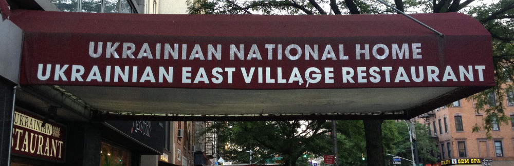 The Location: The Ukrainian National Home is on 2nd avenue between 8th and 9th streets in New York City’s East Village. Look for the big red awning stretching across the east side of 2nd avenue.