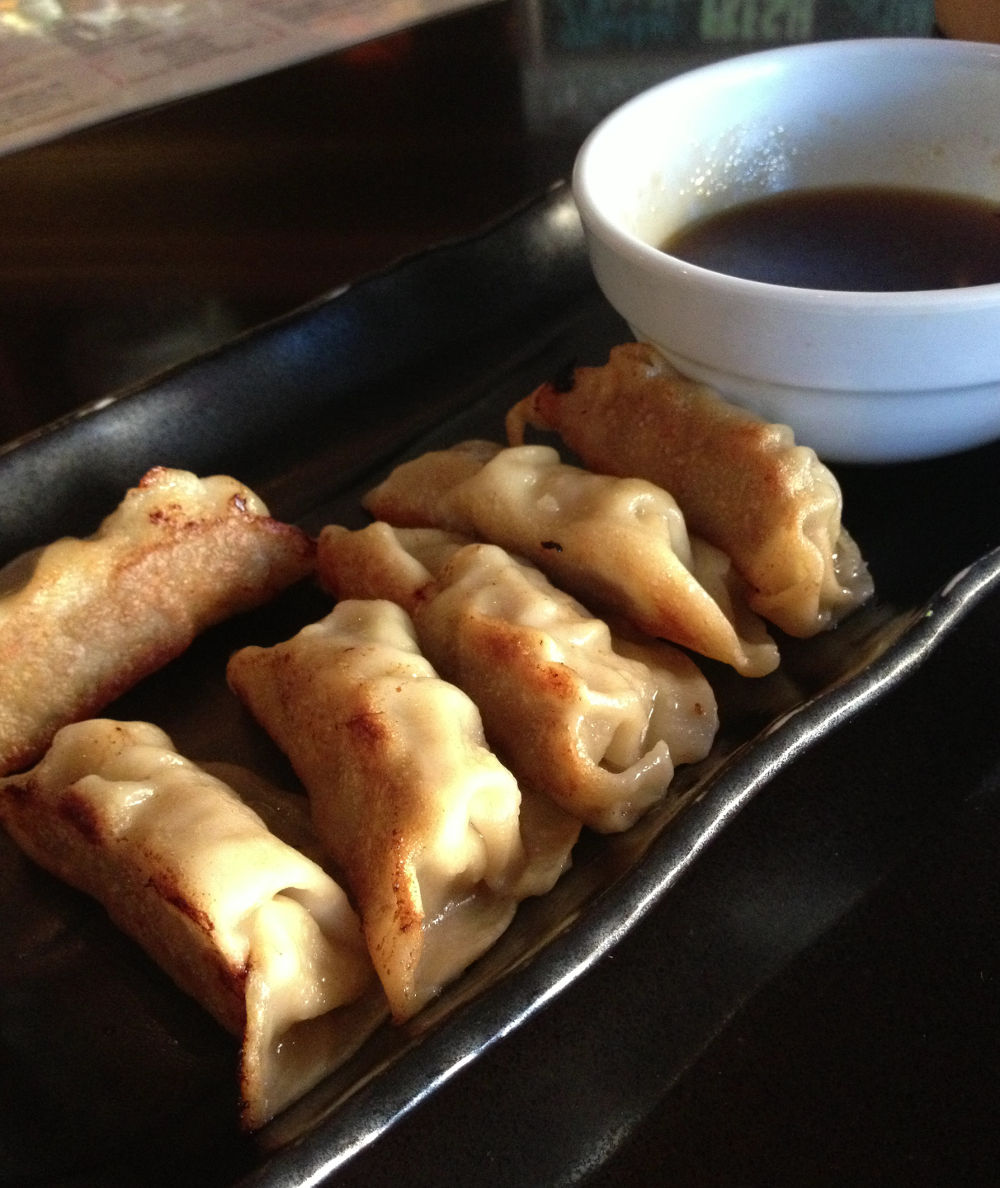 The Dipping Sauce: the sauce that came with the Pork Gyoza was competent, but largely forgettable. The sauce that came with the Spinach dumplings was a thick mix of Chinese mustard and slightly sweetened soy sauce. The sauce was an excellent complement to the Spinach and gave a serious wasabi-mustard rush to the sinuses. This sauce also significantly helped out the Pork Gyoza.