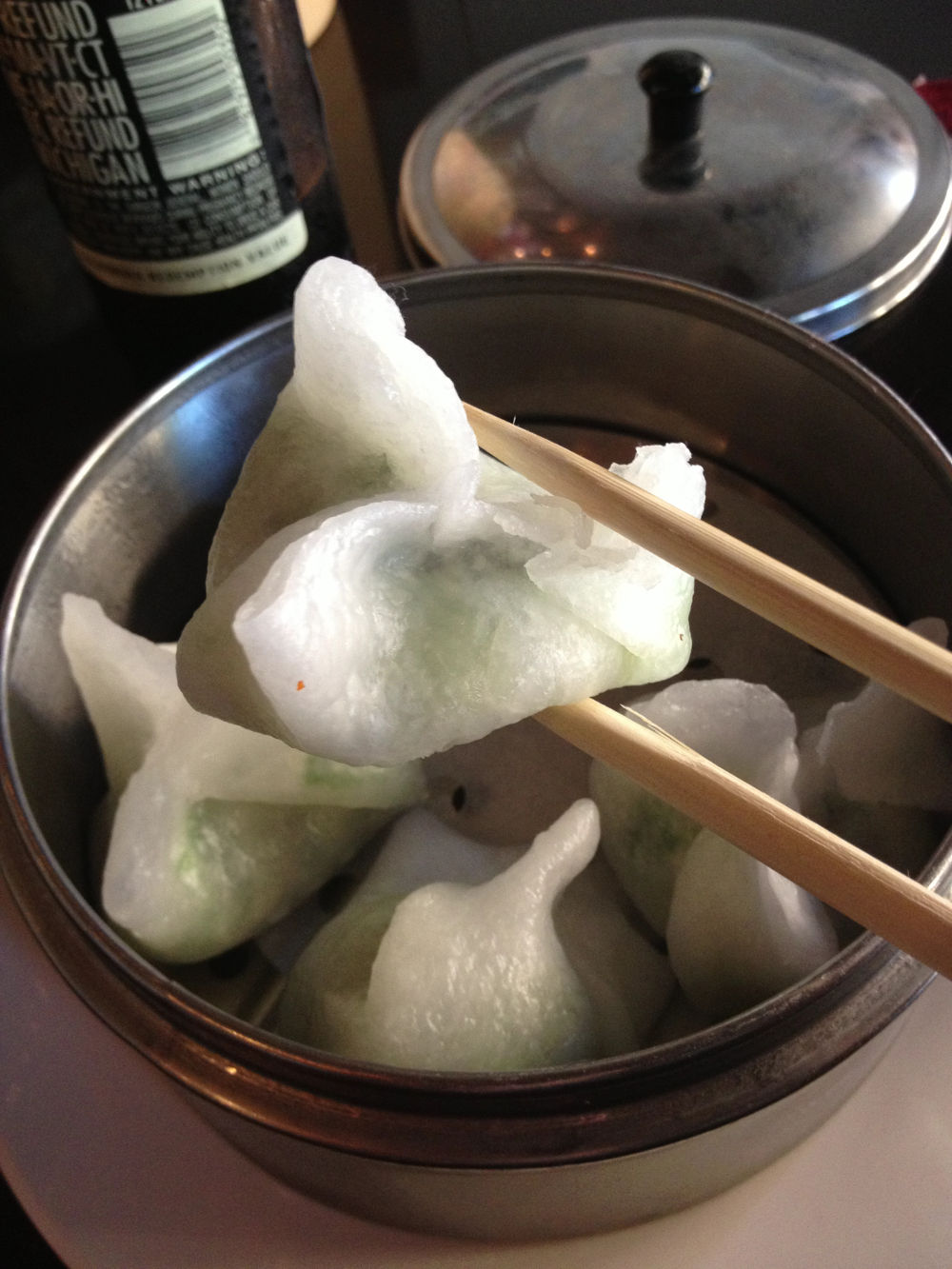 The Dumplings: There are Pork Gyoza, Spinach Dumplings, Veggie Dumplings, Shrimp Har Gow, Chicken Bao, Pork Shumai and Chicken Potstickers on the menu. I tried the Gyoza and the Spinach Dumplings.