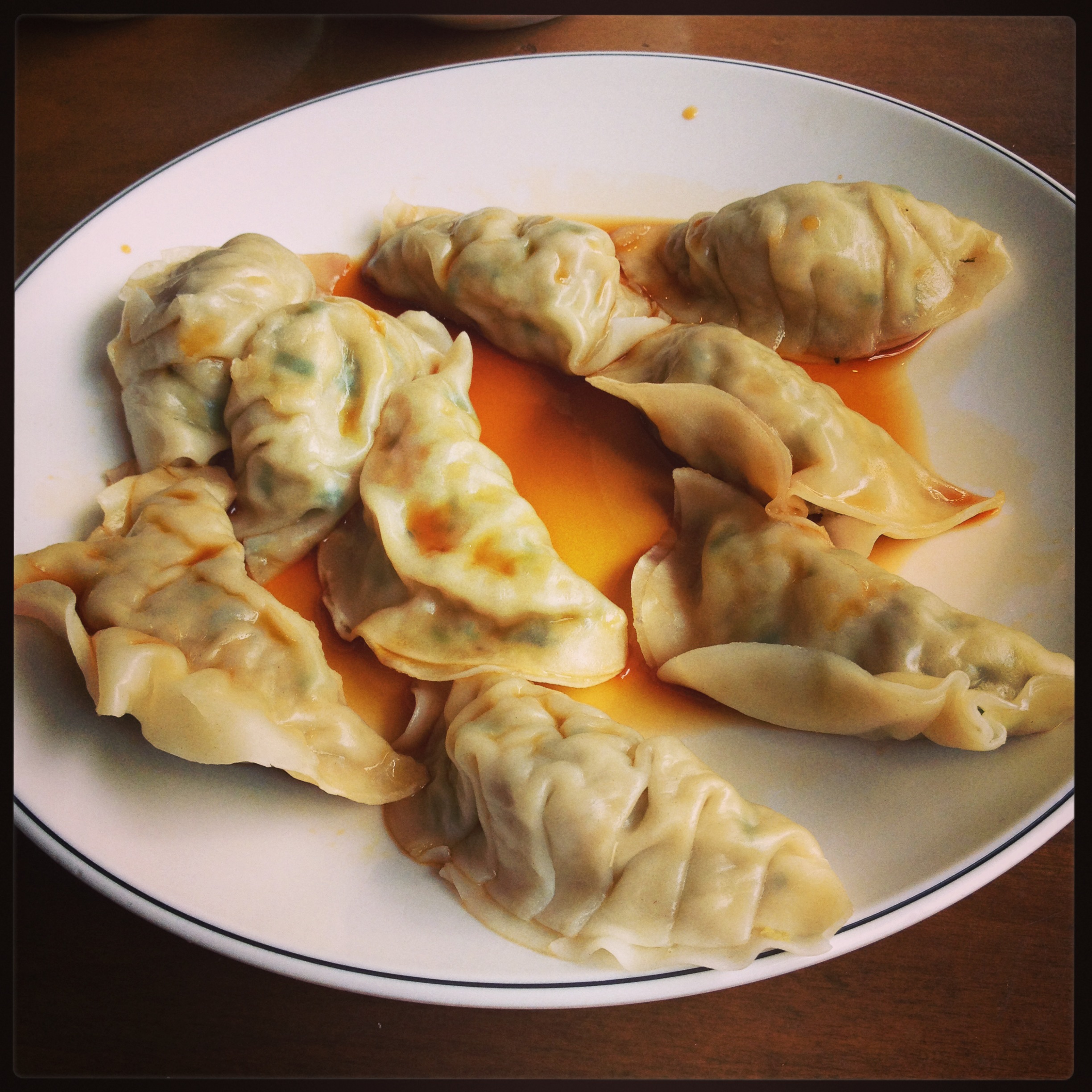 The Dipping Sauce:  The dumplings come bathed in a sauce that seemed to be comprised of soy, rice vinegar and red chili paste.  I couldn’t quite discern where the bitterness was coming from, but it was there in the sauce.