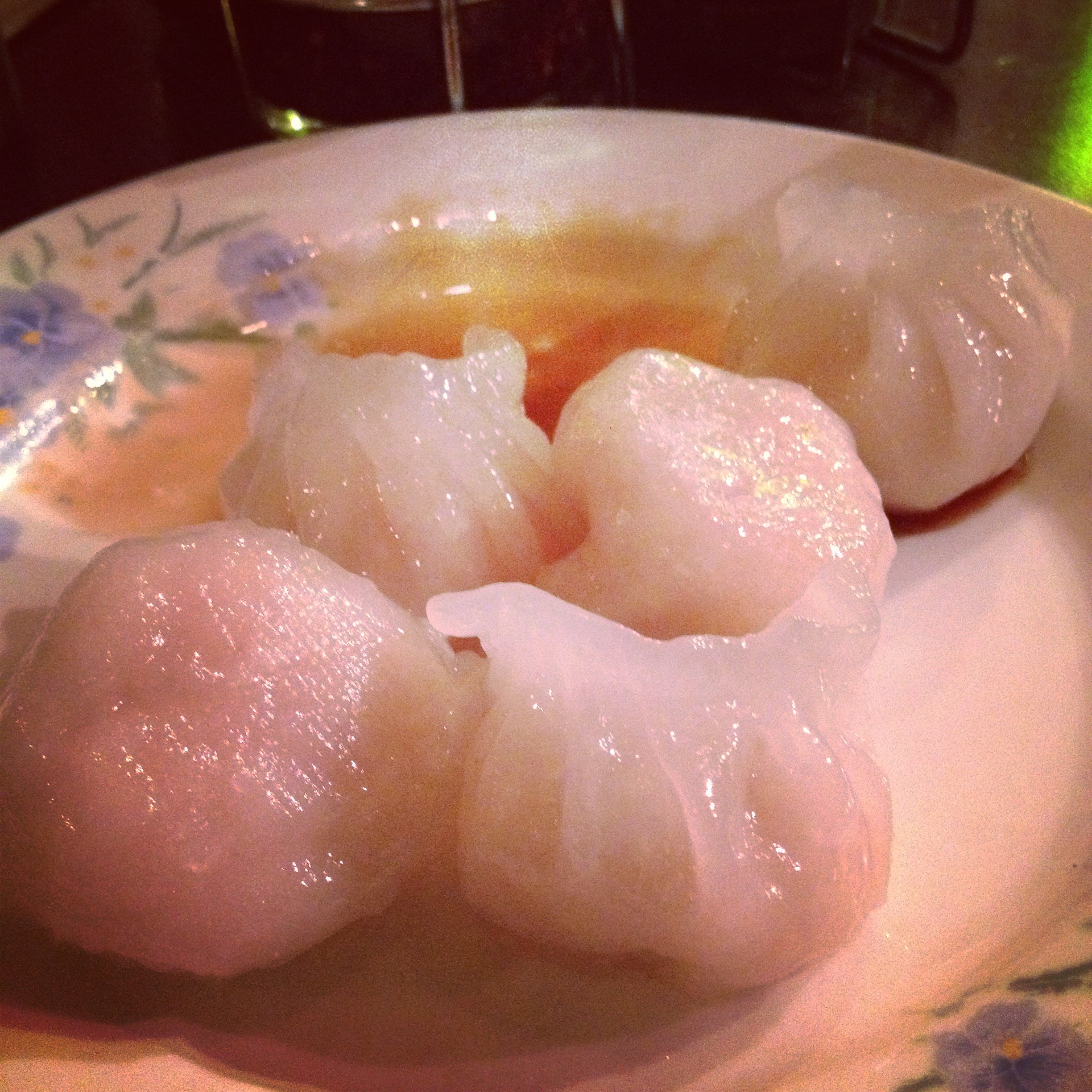 The Dumplings: the first round of dumplings appeared super fast and had clearly been sitting around for a while; no way was that enough time to steam dumplings and they were loop warm and a little tired looking. The first round included Peanut Dumplings which turned out to be chicken dumplings covered in peanut sauce, Vegetable Dumplings, Pork Dumplings and Chicken Dumplings (although the Pork and Chicken dumplings were indistinguishable by sight). We alerted the owner to the weak state of the initial round and in due course he presented us with more Peanut Dumplings and more Shrimp dumplings. This round was fresh and the Shrimp Dumplings (Har Gow style) were really good – big chunks of sweet, fresh tasting shrimp. My dining companion reports that the fresh Peanut Dumplings were also really good. Bottom line though do not expect the owner to hook you up.