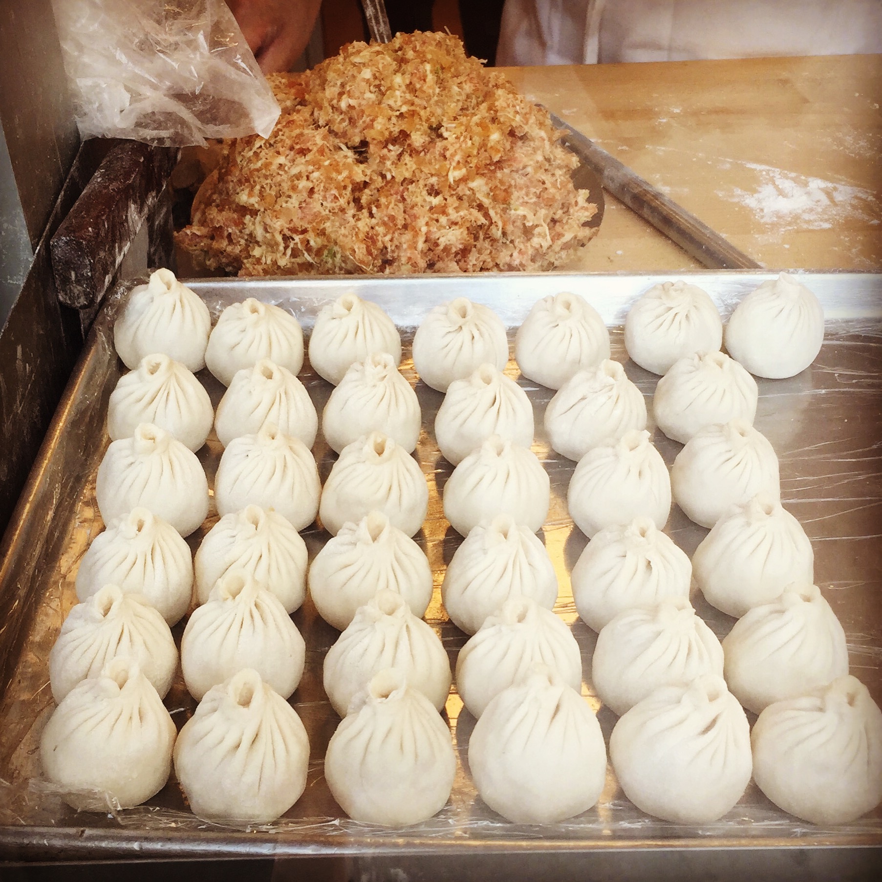 Ollie’s has been a fixture on the Upper Westside of Manhattan for 27 years, doing a huge business in dine-in, take-out and delivery of Americanized-Chinese food. Over the last couple of years they have closed a couple of locations and then recently opened a new one on Broadway and 103rd Street. At the new, Ollie’s To Go, there is an open kitchen visible from the street with a dumpling making station right up front, separated from the pedestrians by only a pane of glass.