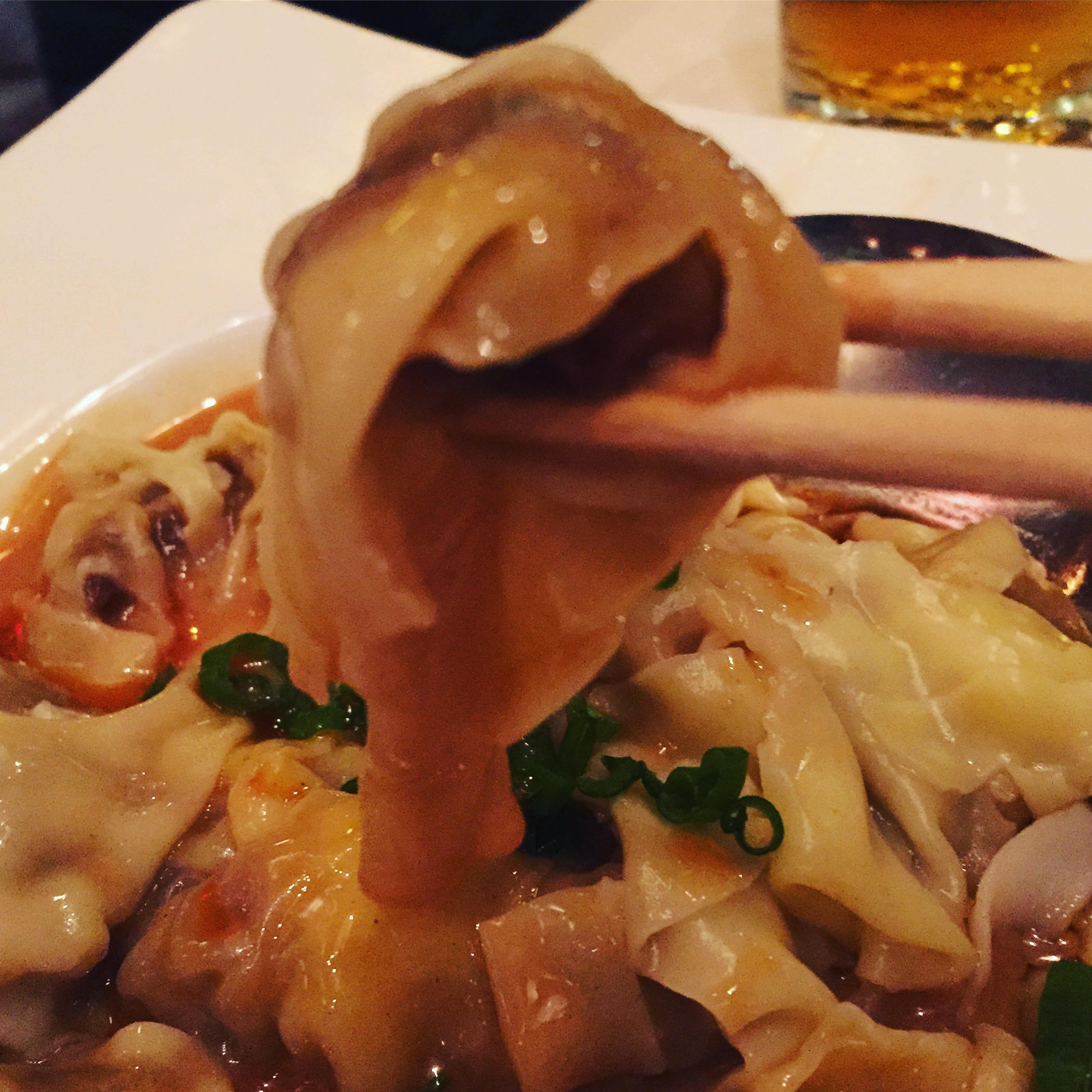 Dumplings with Hot Oil – for this dish Pearls uses large floppy wontons, so when it arrived this dish looked like a big bowl of noodles. This is my favorite preparation for this dish, the wonton noodle that trails off the meat ball stuffing provides lots of surface area for the sauce to cling to. But while Pearls got the wontons right, the sauce was terrible, a bland mix of sesame paste, soy sauce and what looked like chili oil that had all the spice leached out of it.