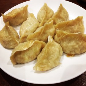 The Dumplings: Ravioli de JUIN sells Raviolis Au Porc, Raviolis Au Boeuf, Raviolis À l’Agneau et oignon (lamb and onion) , Raviolis Au Poulet (chicken) and Raviolis Végétariens. The dumplings are all cooked first in a tiny amount of oil until the bottom of the dumplings are just fractionally crispy and then water is added to the pan and they are covered and steamed. Each order includes 10 fairly large dumplings.