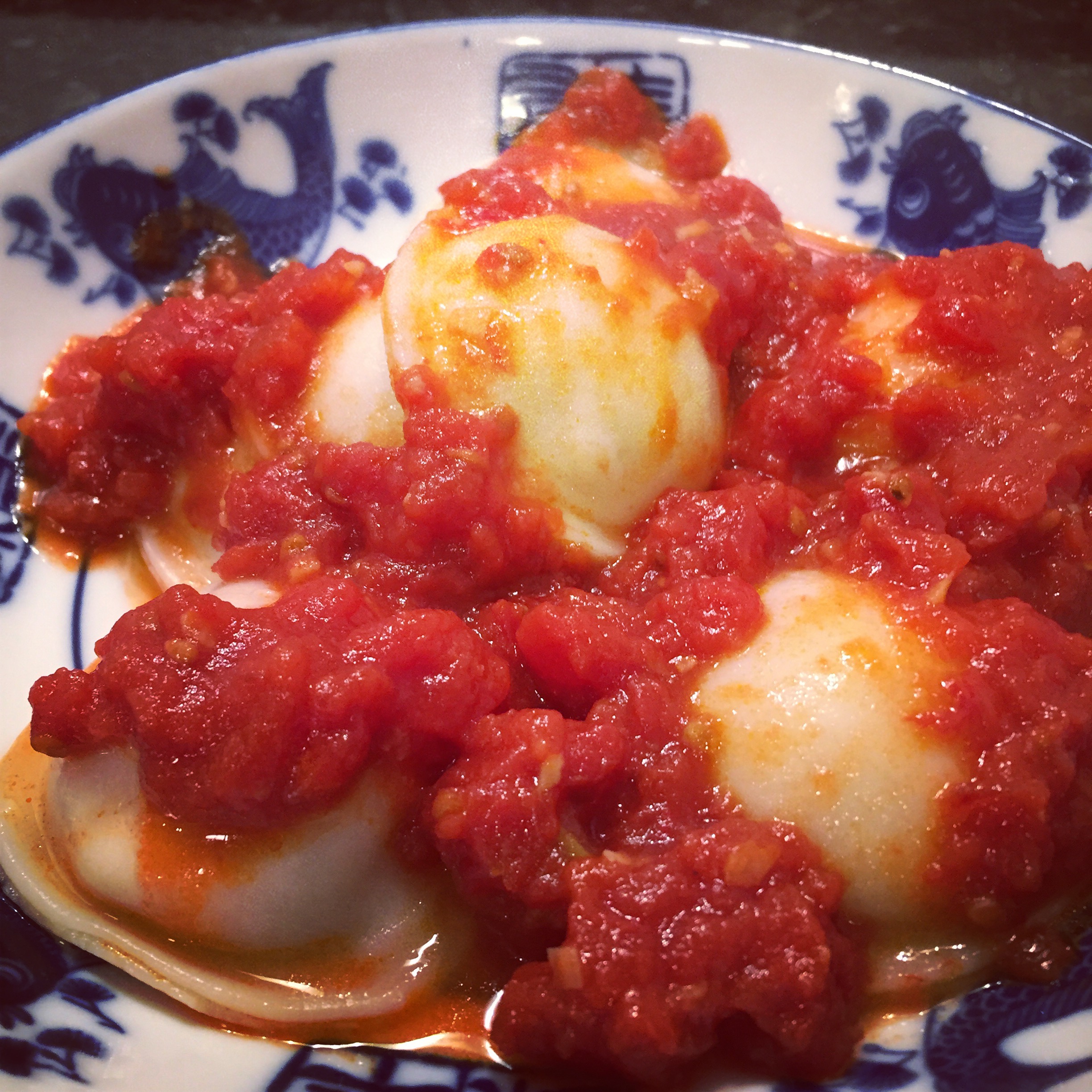 I just discovered that Soy Boy also makes frozen vegan tofu ravioli, they sell Original Ravioli (filled with seasoned tofu), Rosa Ravioli (tomato flavored pasta filled with tofu and roasted red pepper) and Verde Ravioli (spinach flavored pasta filled with garden herb-seasoned tofu). The Original Ravioli are round and silver dollar sized and the tofu filling is seasoned with lemon juice, onions, garlic powder and herbs and spices. The ravioli filling had a convincing ricotta cheese texture but I thought it was quite bland, maybe they have gone too far in the low sodium direction. I think their filling could also have used some nutritional yeast to add some cheese and umami flavor. Soy Boy’s ravioli are a convenient vegan dish, but I prefer the flavor profile of our vegan ravioli recipe.