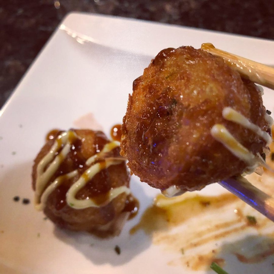 Flat bottomed takoyaki, suggestive of frozen takoyaki