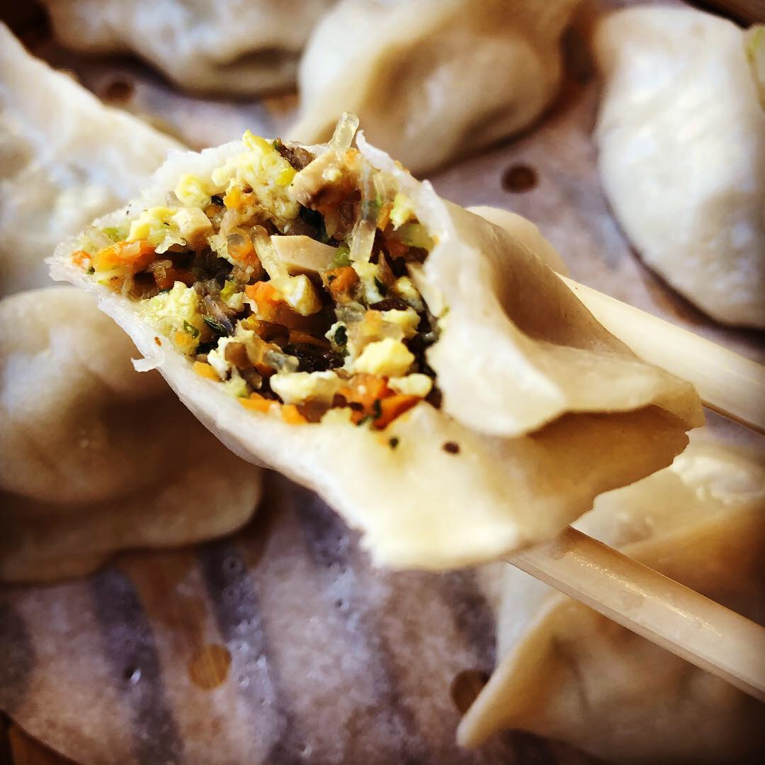 Nearby at Grain House the vegetable dumplings are vegan and delicious. I reviewed Grain House about a year ago, shortly after it opened, and gave its Spicy and Numbing Pork Wontons and Pork Potstickers lots of love. The steamed vegetable dumplings, which appear to be house made, are as good or even better than the Pork Potstickers. The wrappers are just thick enough to be chewy without being doughy and envelope a tasty mix of tofu, cabbage, carrot, glass noodles and maybe mushroom.