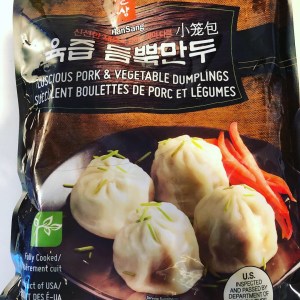 HanSang is HMart’s house brand for frozen foods and they sell a variety of dumplings under this brand. Their Pork and Vegetable Dumplings look like frozen soup dumplings and have enough juice in them that they could almost pass as Xiao Long Bao.