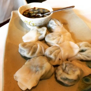 I also tried the vegetable dumplings, which are filled with chives and they were either boiled or steamed. These dumplings had a very clear, clean flavor of chives that I really enjoyed, they were tasty and they screamed healthy. But I didn’t really enjoy the way the wrappers were folded into a square tab at one end of the dumpling. This wad of wrapper dough made a convenient handle to grab the dumplings by with chop sticks, but this part of the dumpling was stodgy and chewy to eat. I ended up just biting the chive filled portion of the dumpling off the tab and leaving a pile of these wads of dough on the plate.