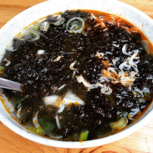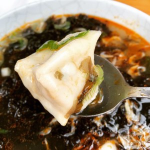 The Dumplings: Xi’an cuisine is known for its variety of noodles, but dumplings served in soup are also popular. Murger Han has only one dumpling offering, pork dumplings in spicy and sour soup. The soup was quite spicy but didn’t have much of the sour vinegar flavor that Xi’an soups are known for and lacked the complexity and punch of the soup at Xi’an Famous Foods. The dumplings were well seasoned and quite flavorful, and the dough wrapper was perfectly thick enough to absorb some flavor from the soup without getting water logged. Despite Shaanxi Province being pretty far from the ocean, the soup had lots of seaweed (that is the black you see in the photo) and dried tiny shrimp in it. I think the intent of these elements was to add umami to the soup, but they really needed to focus on bringing more sour to the mix.