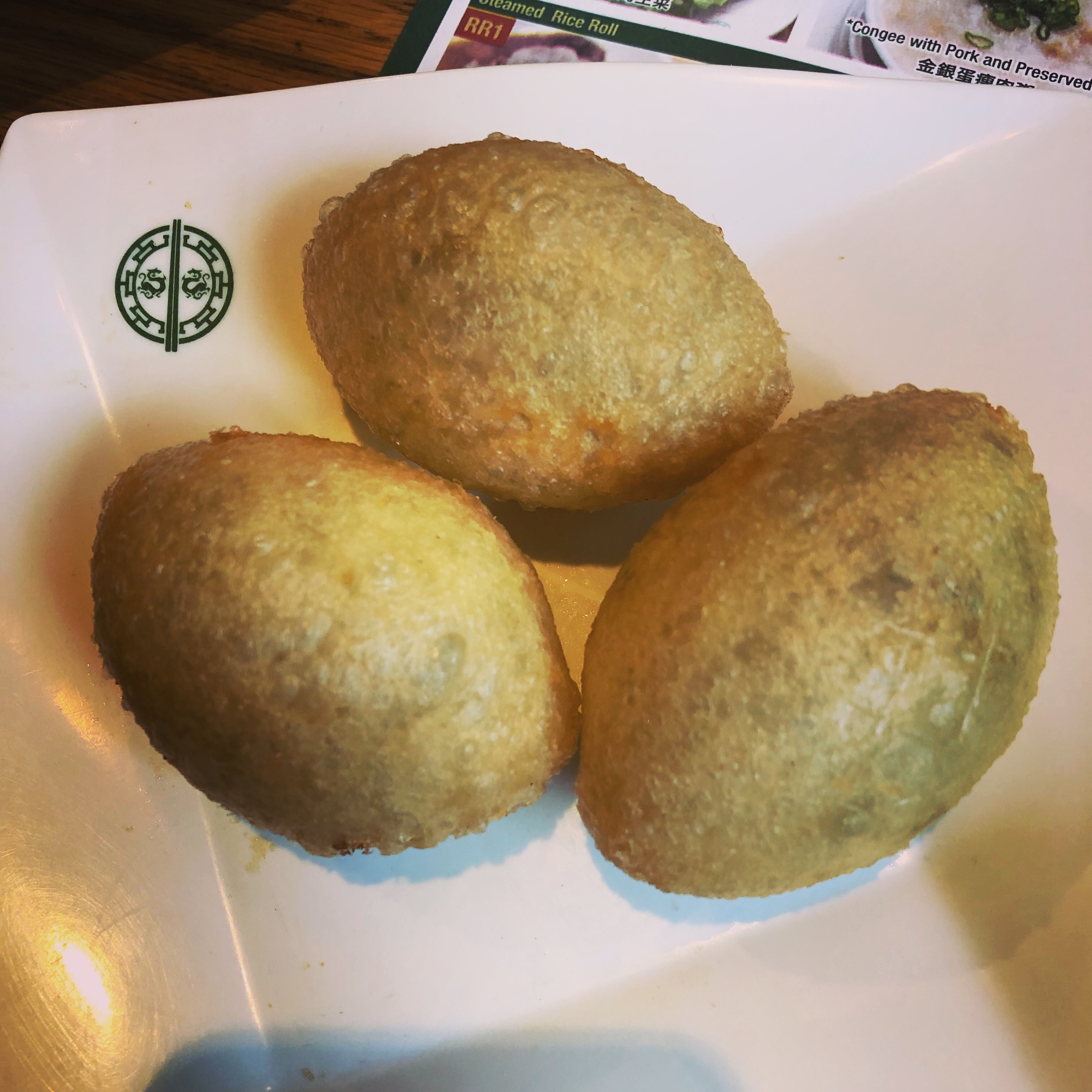 I was warned by a friend that the Shumai are not the strongest option at Tim Ho Wan, but I thought they were quite good, in fact we got two orders of them. They were filled with more of the sweet tasty shrimp mixed with savory pork, and once again got to our table immediately out of the steam. The last dish we tried was the fried pork dumplings, which arrived on the table looking like goose eggs. These dumplings are deep fried so the rice flour wrapper develops an out layer of crispiness and the dumpling balloons out into an egg shape. I though these dumplings had a really nice balance, the wrappers were slightly sweet and the pork filling was salty and savory and the wrappers were both crispy and chewy. These dumplings were a contender with the Har Gow for best dumplings of the night.