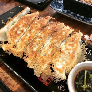 The vegan gyoza use a wheat flour wrapper and are stuffed with cabbage, shiitake mushroom, scallion, ginger and garlic. They are cooked with a batter, that when fried, links the gyoza together with a crispy lacy crust. The gyoza pie is an order of 12 gyoza, fried together into a large sheet of lace batter. I really enjoyed these gyoza but I found the ginger in the dipping sauce to be harsh and overpowering.