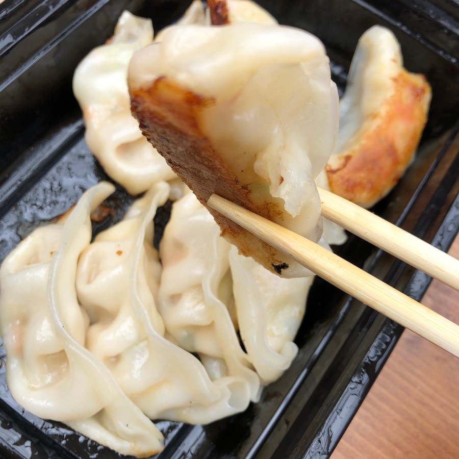 Freshly pan-fried vegan dumplings from Bun Ramen