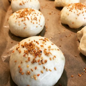 This recipe was derived from the Curry Beef Bun recipe at Mary’s Test Kitchen, but instead of using textured vegetable protein I used Impossible Burger for the filling.  I was really impressed with how these buns came out and the Impossible Burger filling was completely convincing as curry beef.  The outer surface of the buns comes out crunchy and the inner dough becomes light and fluffy.  A sprinkled Sriracha Toasted Sesame Seeds on top of the buns which provides a spiky toasted flavor.