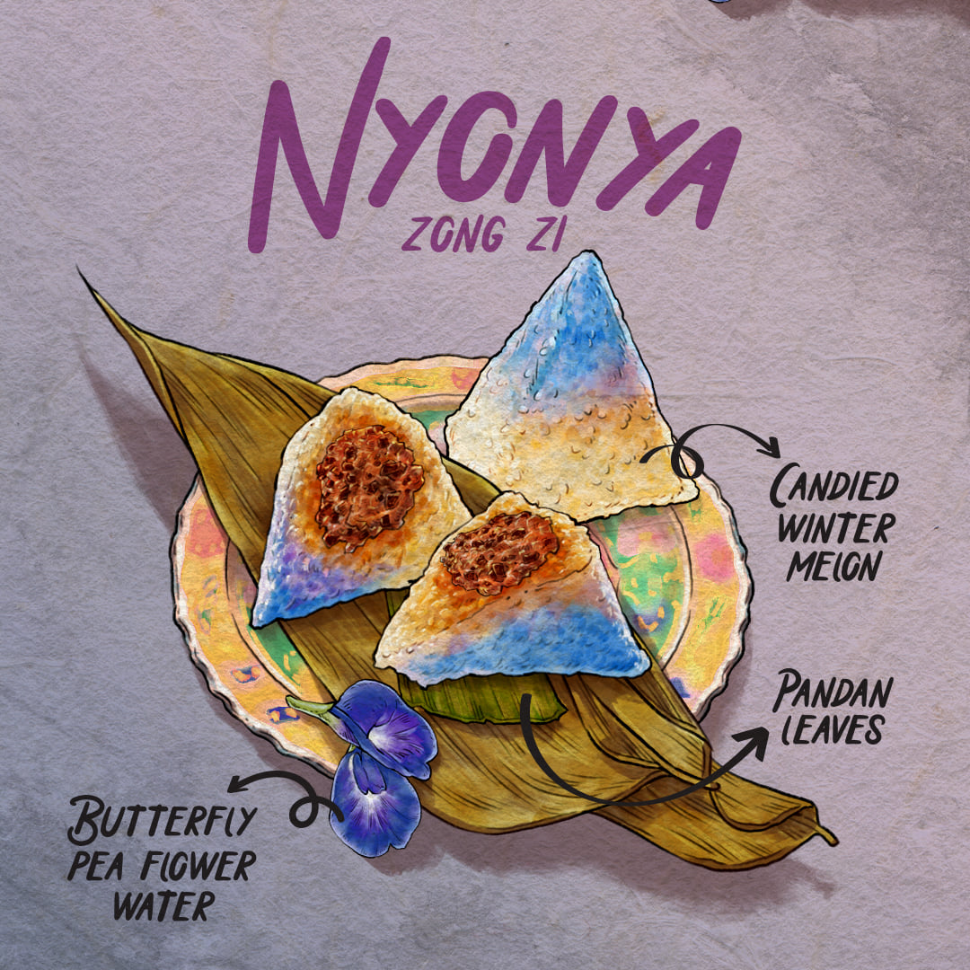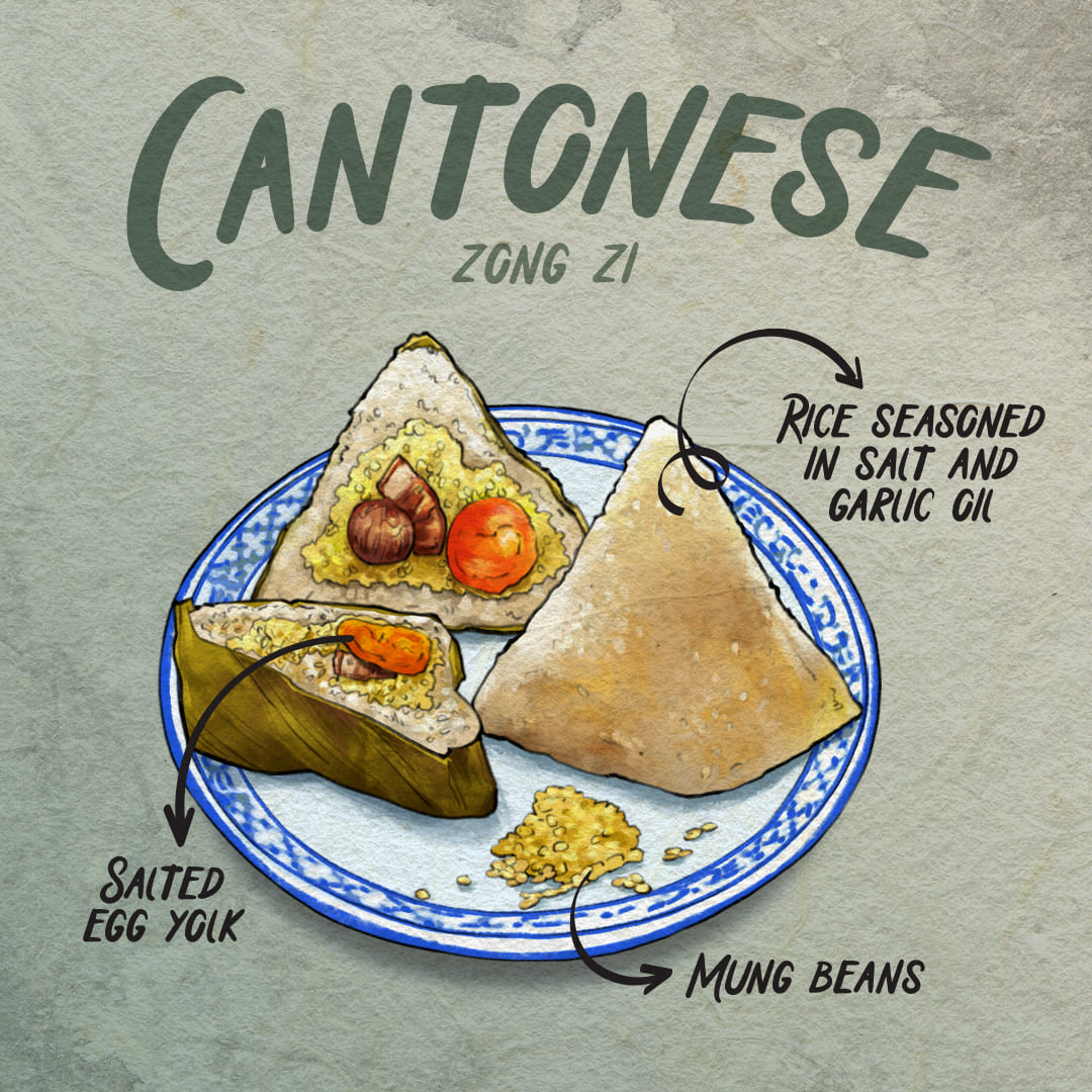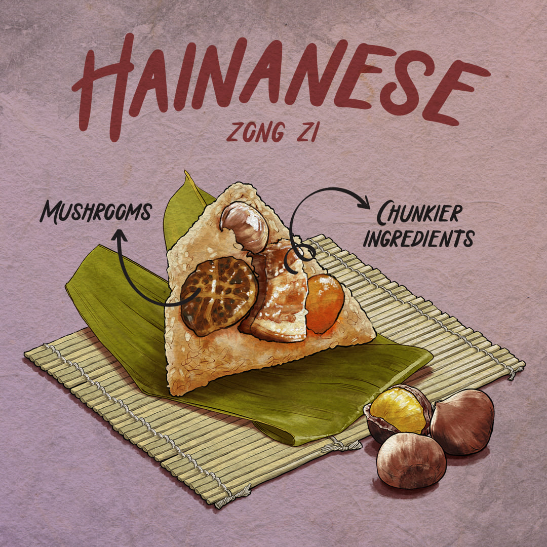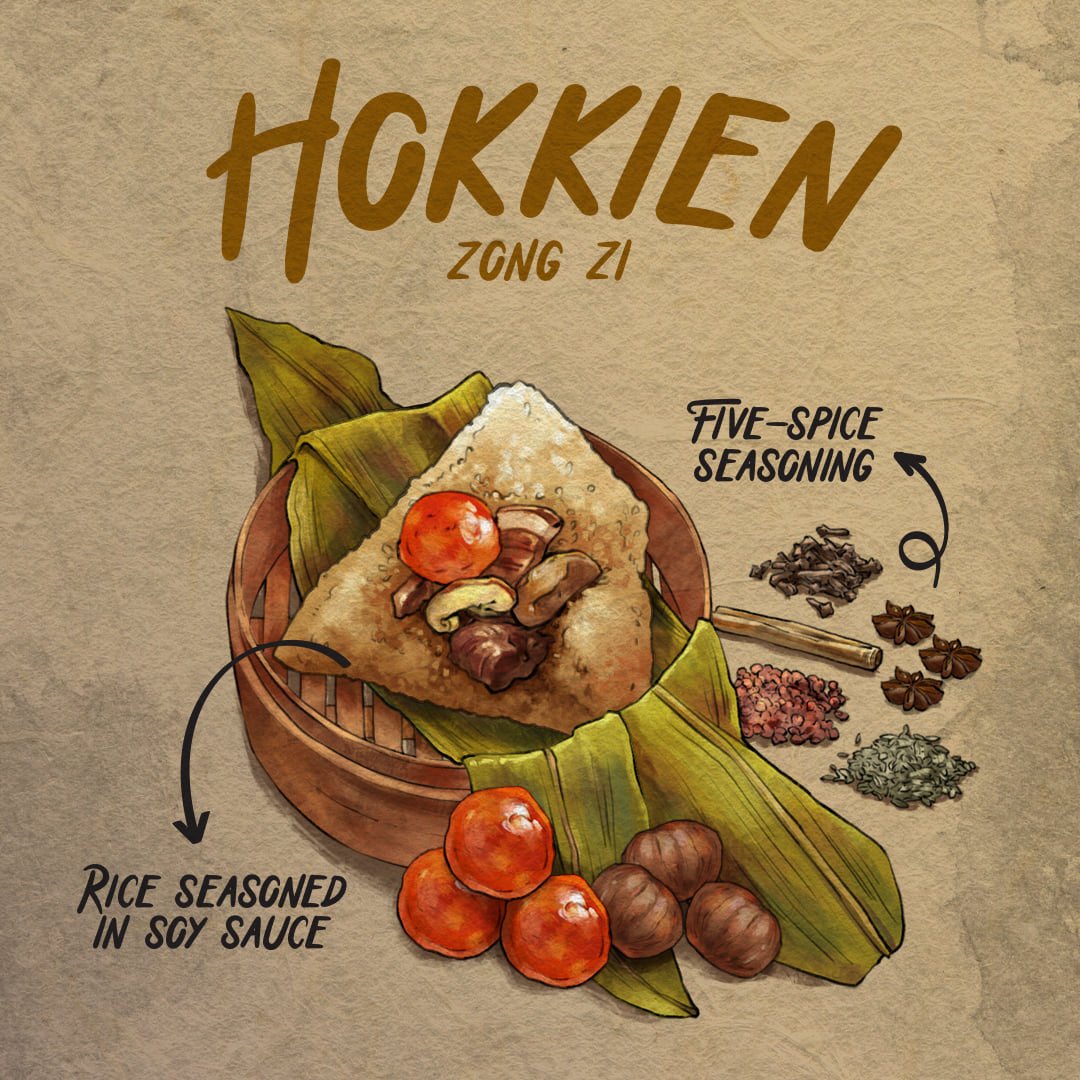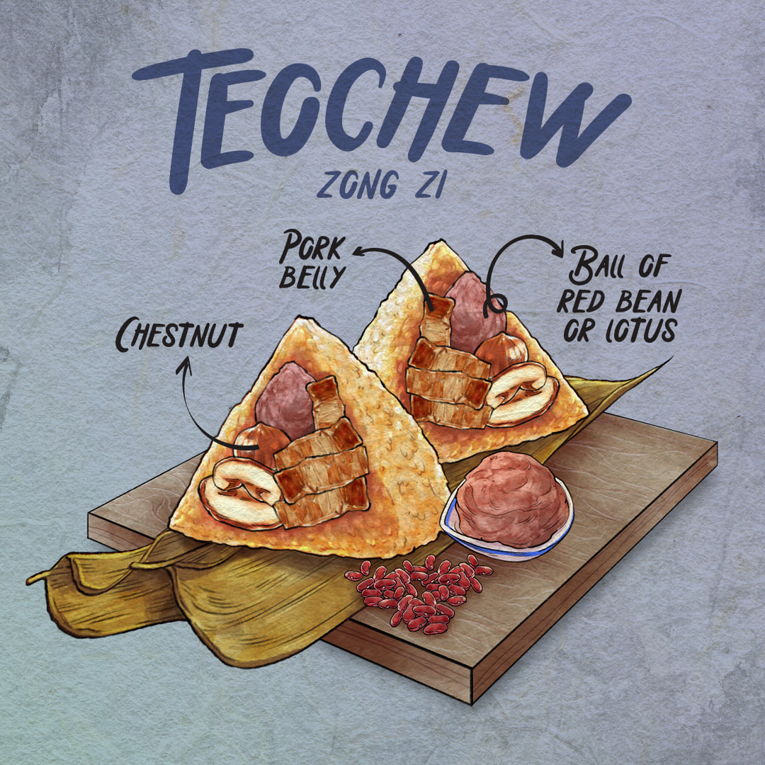 Singapore’s Ministry of Culture, Community and Youth shared a graphic to its Facebook feed showing the six types of popular Zong Zi (rice dumplings) from various dialect and ethnic groups in Singapore. Zong Zi are made of glutinous rice stuffed with a variety of fillings and wrapped in bamboo leaves, or other large flat leaves, and are cooked via steaming or boiling. In the U.S. you will see them on Chinese menus listed as sticky rice dumplings or steamed sticky rice with Chinese Sausage. Zong Zi are most commonly eaten during the Duanwu Festival, or Dumpling Festival or Dragon Boat Festival, which occurs on the fifth day of the fifth month of the Chinese lunar calendar, but this dish was also a form of “fast food” for many farmers working in the fields (much like the Pasty for Cornish miners). These rice dumplings can range from sweet and desert like with red bean filling, to savory and salty with pork belly and salted duck egg filling, to spicy and numbing with Sichuan peppercorn, chili powder, and preserved pork filling.