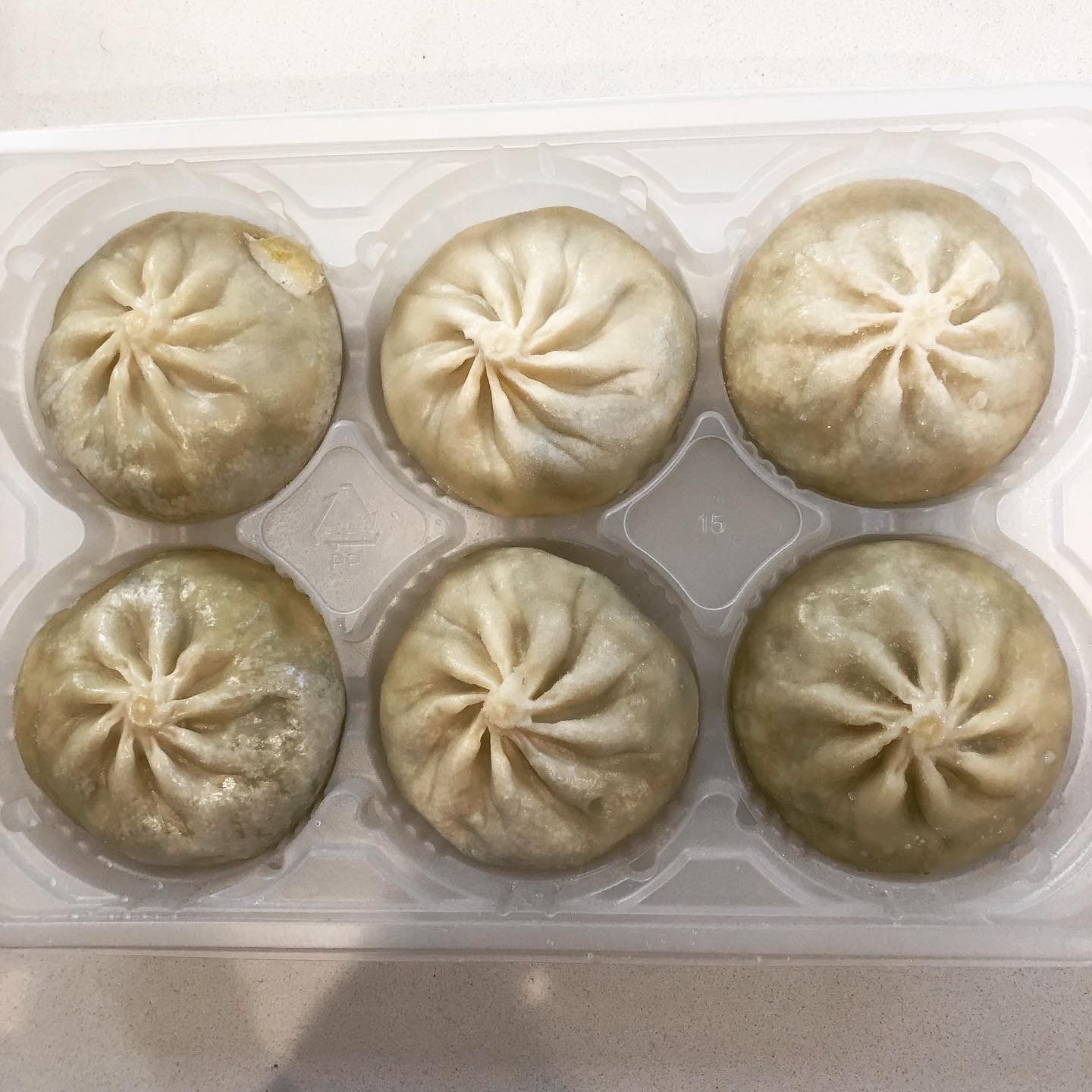 As suggested by their name, these dumplings are primarily filled with glass noodles with a smattering of very finely chopped vegetables, which the package lists as: chives, radish, carrot, soy protein, mushroom and garlic. These dumplings don’t have a lot of flavor except for spicy heat from the green paprika, chili, and black pepper in the filling, and have a mushy texture. Overall these dumplings were not great, but can be cooked in a microwave in their package in about three minutes, so they are very convenient. If you eat them with a strong soy and vinegar dipping sauce, these packages of six dumplings make an OK snack.