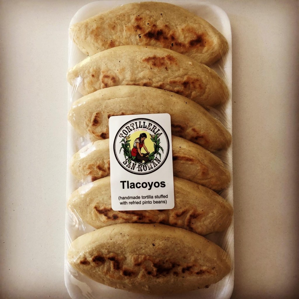 Since opening in May of 2009, Tortilleria San Roman in Philadelphia’s Italian Market, has been churning out amazing, fresh corn tortillas. A dough made of corn flour and water is put into a long squeaky conveyor belt that cuts and cooks the dough into tortillas and it seems like the machine runs all day long. A pack of 15 fresh tortillas costs $1.50 and a pack of 30 costs $2.25, so this is the best bargain in the Italian Market. These are the best tortillas I have ever eaten. Tortilleria San Roman is a tiny storefront that also sells salsa, tortilla chips, hot sause, Tajin seasoning and tlacoyo, the last of which is what grabbed our interest.