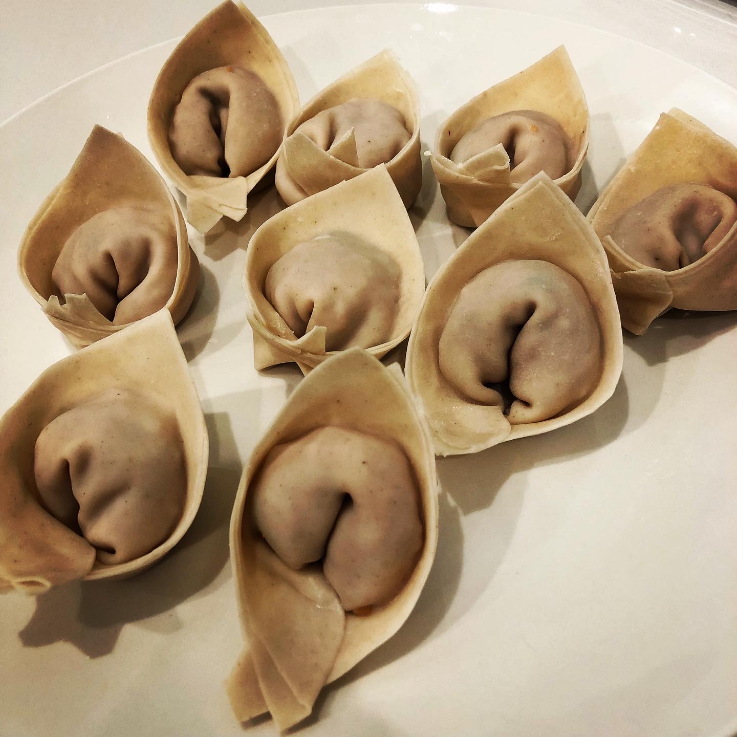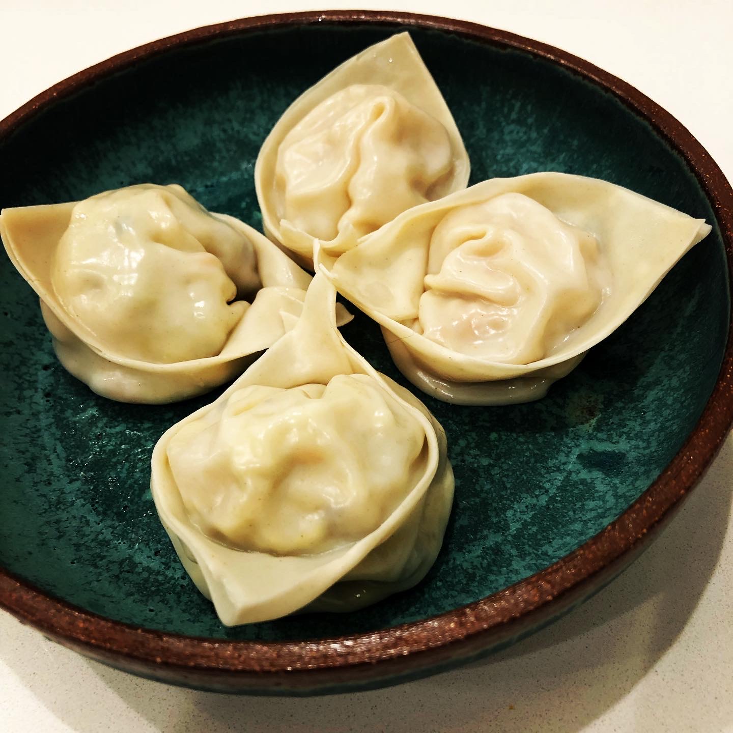 With the Omicron surge upon us the Dumpling Hunter team is retreating from restaurant dining for a while and returning to home cooking. We recently tried making pork and kimchi dumplings using OmniFoods plant based ground pork. I am not going to post the recipe because they did not turn out that great, but the pictures are pretty. The OmniPork worked quite well for making pork and scallion wontons, but the mild flavor of the OmniPork was totally overpowered by the kimchi. The kimchi itself was excellent, but these dumplings did not replicate the truly great flavor of pork and kimchi dumplings.
