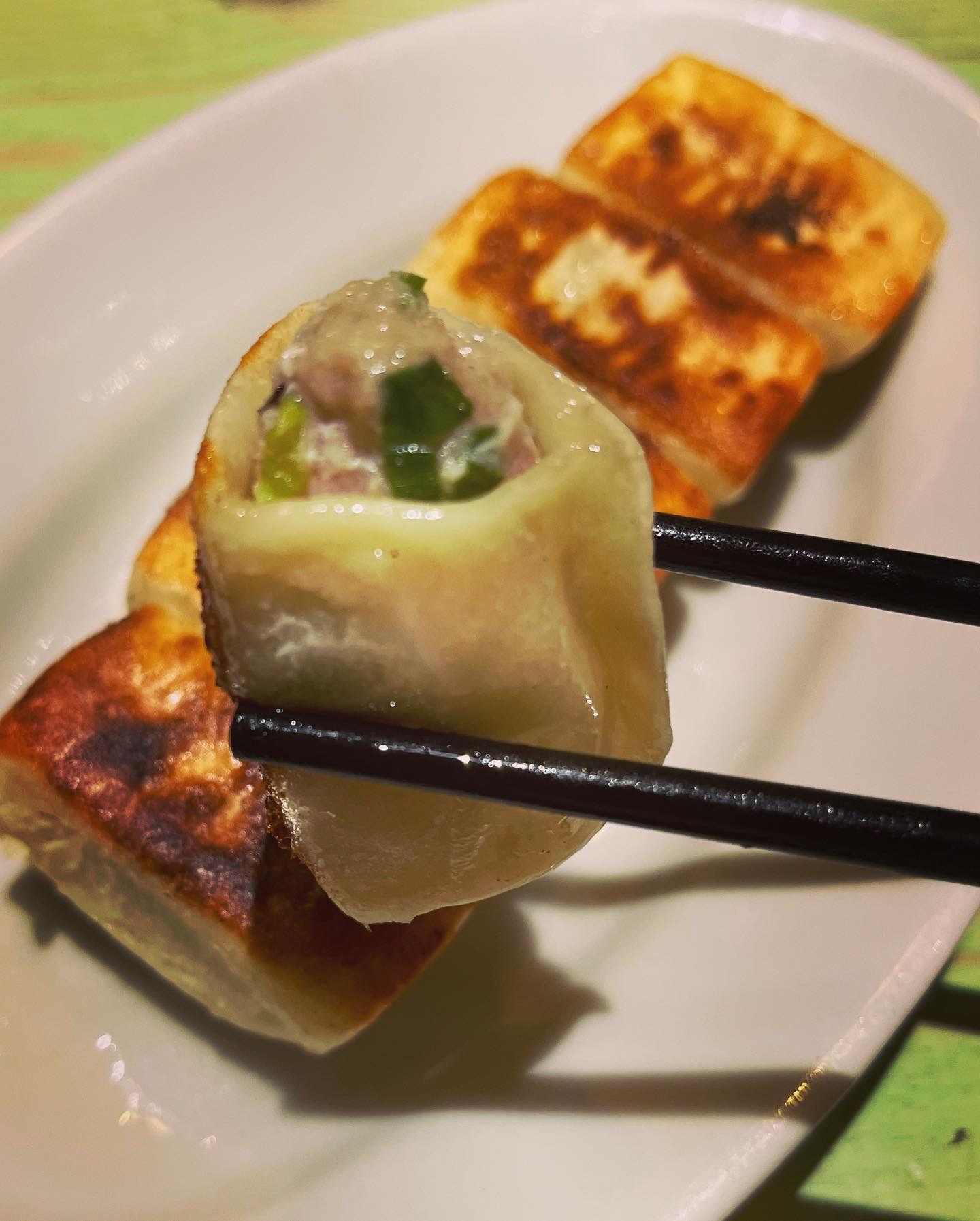 Their bottoms are crisp fried to perfection and the juicy filling gushes into your mouth when you bite into them.