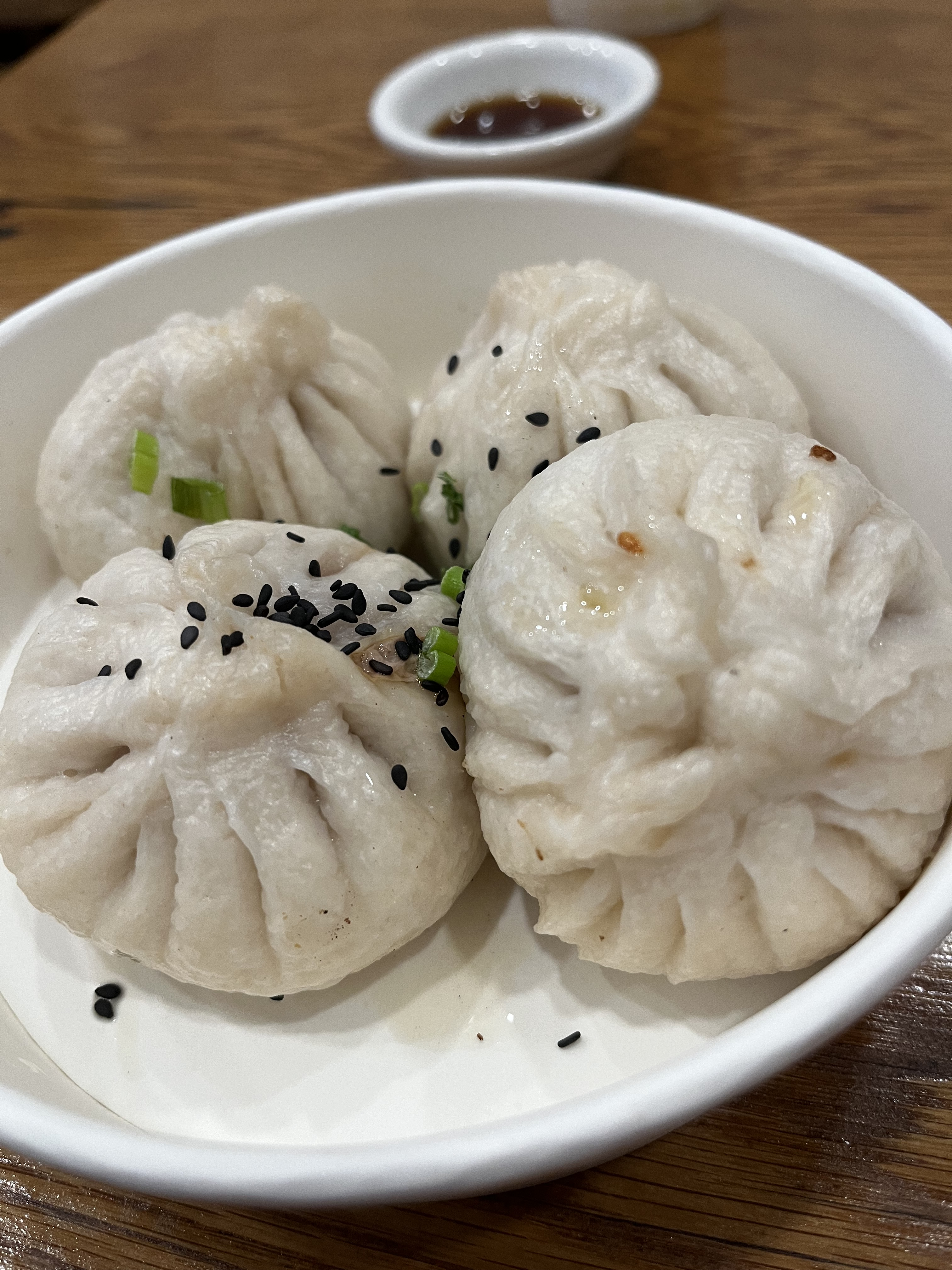 The Dumplings: 3 Times sells Pork Xiao Long Bao, Pork and Crab Xiao Long Bao and Chicken Xiao Long Bao and a variety of other dumplings including two of my favorites, the Shanghai style sticky rice with pork shumai and the pan-fried pork buns (Sheng Jian Bao). The filling for Shanghai style sticky rice with pork shumai reminds me of Southern style dirty rice, mixed with pork and flecks of Chinese Sausage. These shumai are usually a flavorful bite, full of umami and sweet and sour notes from the sausage. Unfortunately, the shumai at 3 Times had no flavor, I mean none, to the point where I thought I might have contracted COVID and lost my sense of taste. I slurped down some of the soy dipping sauce just to convince myself my taste buds were intact and not virus ridden. Thankfully the pan-fired pork buns were much better, with great pork flavor, sweetness from the top of the bun and burnt caramelization from the crispy bottoms of the bun. Unlike the pan-fried buns served at a lot of places, in proper Shanghai style the ones at 3 Times each contained a spoon full of soup.