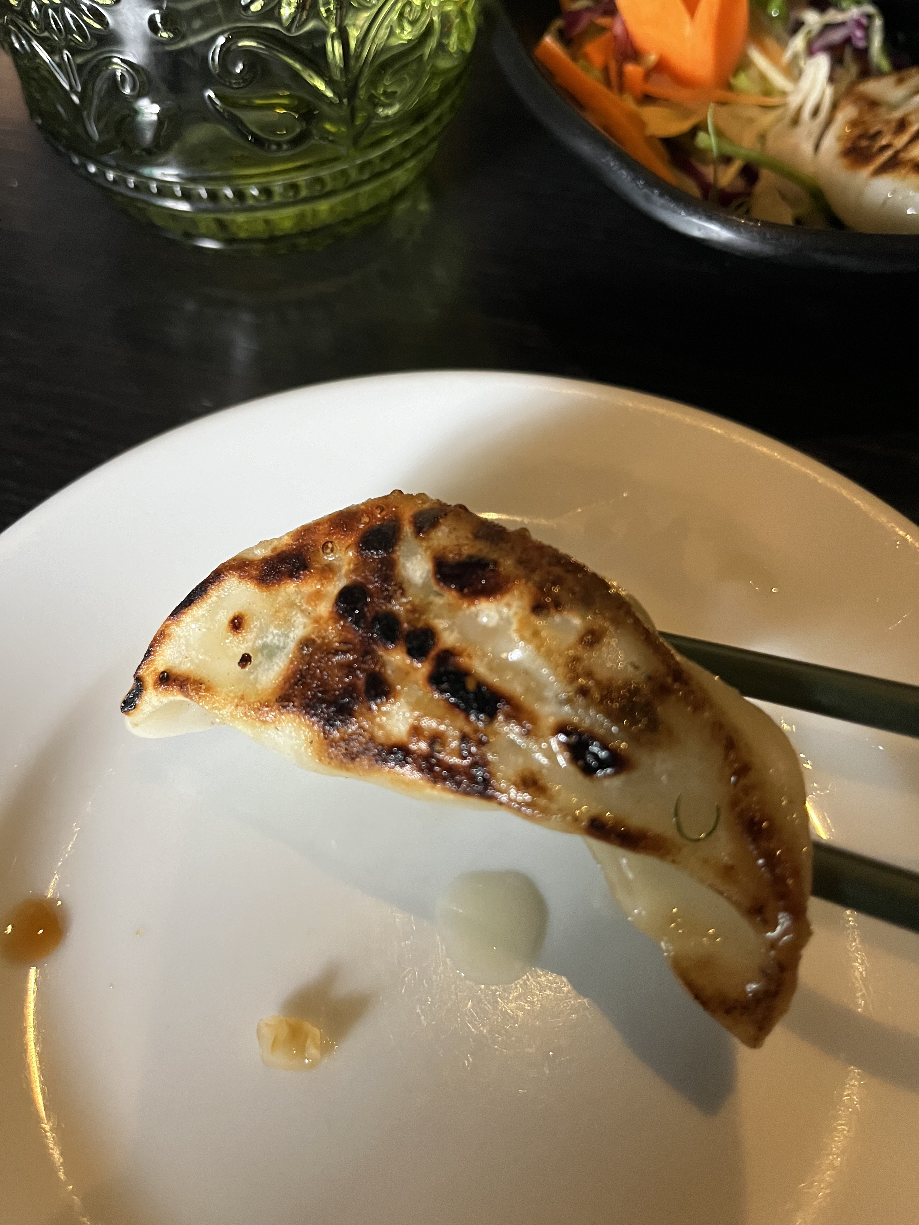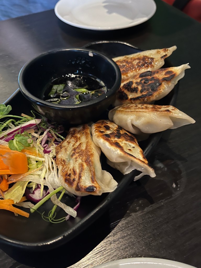 Itadakizen London. Near King’s Cross St. Pancras train station, Itadakizen is a plant based Japanese restaurant that serves deep fried vegan gyoza. The gyoza were excellent as was the Goma-Q, the vegan Karage and the Shoyu Ramen. I recommend this place.