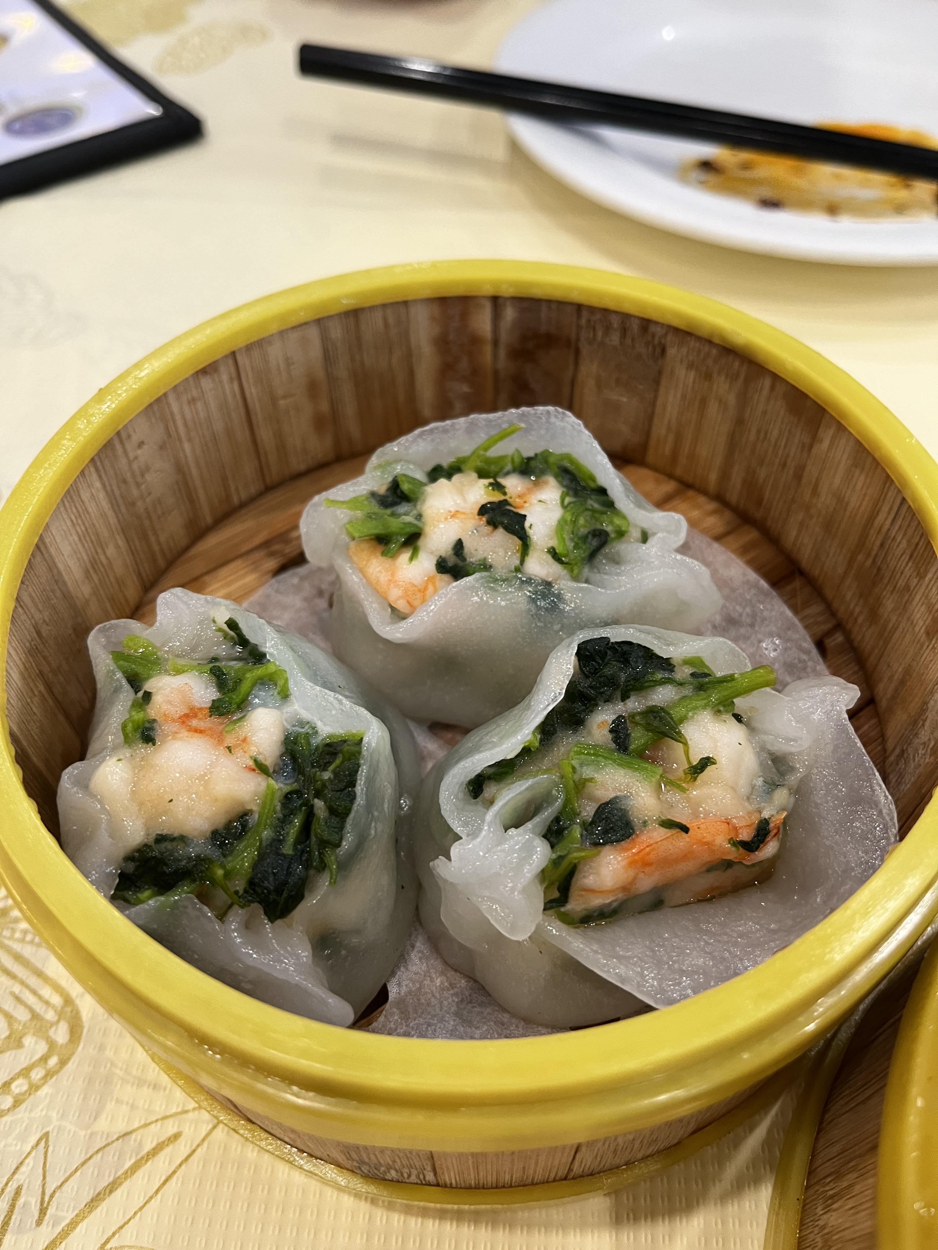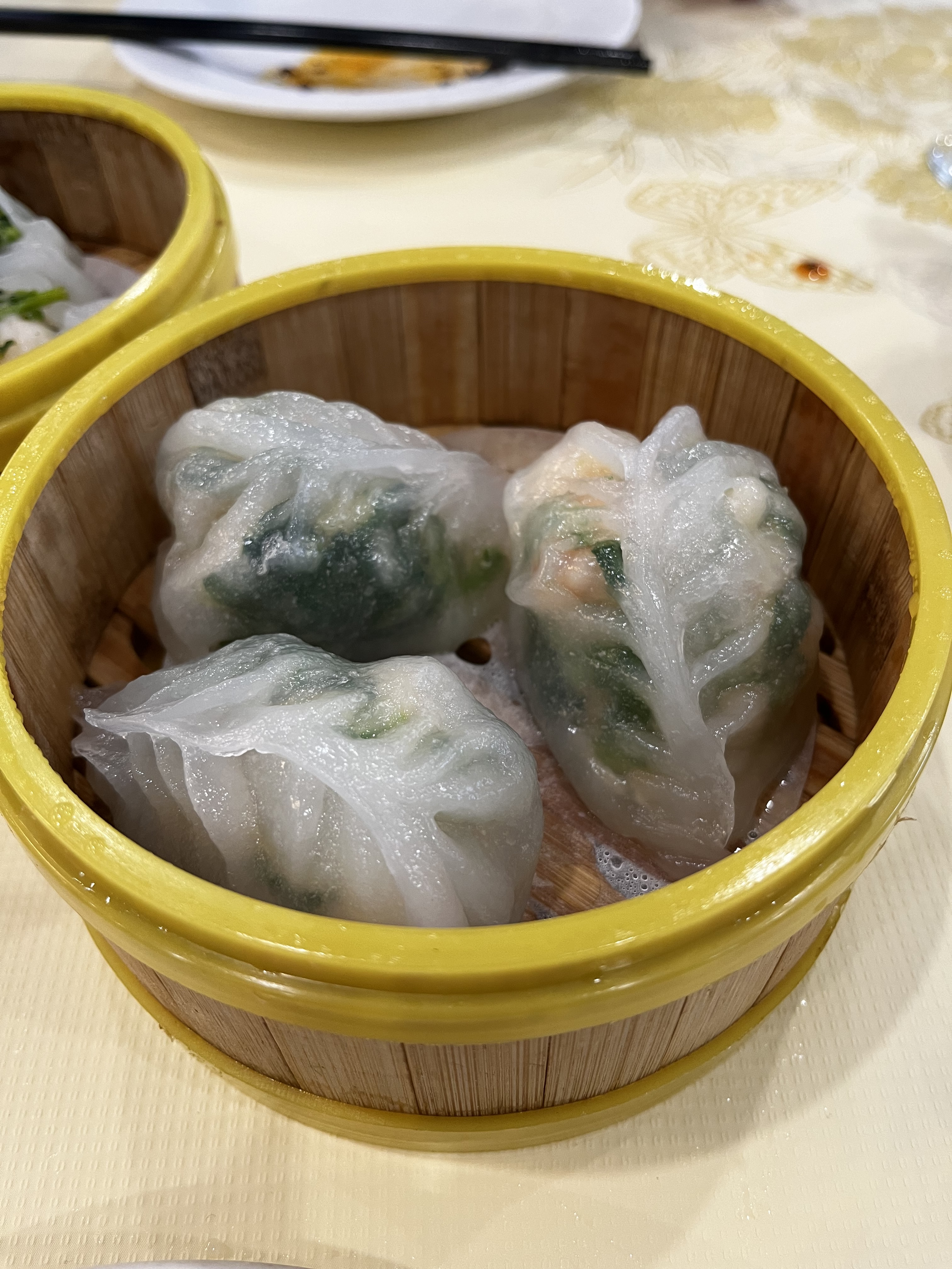 Furama is a new Dim Sum palace style restaurant in South Philadelphia where dim sum is served from carts that roam the dining room. I am conflicted about dim sum served from carts. I enjoy the tension/surprise of spotting a cart across the room that looks good and waiting for it to arrive at my table and then trying to understand what dishes are available, are they sweet or savory, shrimp, chicken or pork? But often in large restaurants the dishes are cold or luke-warm when they arrive to the table and I don’t enjoy dumplings with cold rice flour dough wrappers. The Sunday morning I was at Furama there were plenty of carts prowling the dining room, with lots of different dishes and all of the ones we picked were still hot when served.