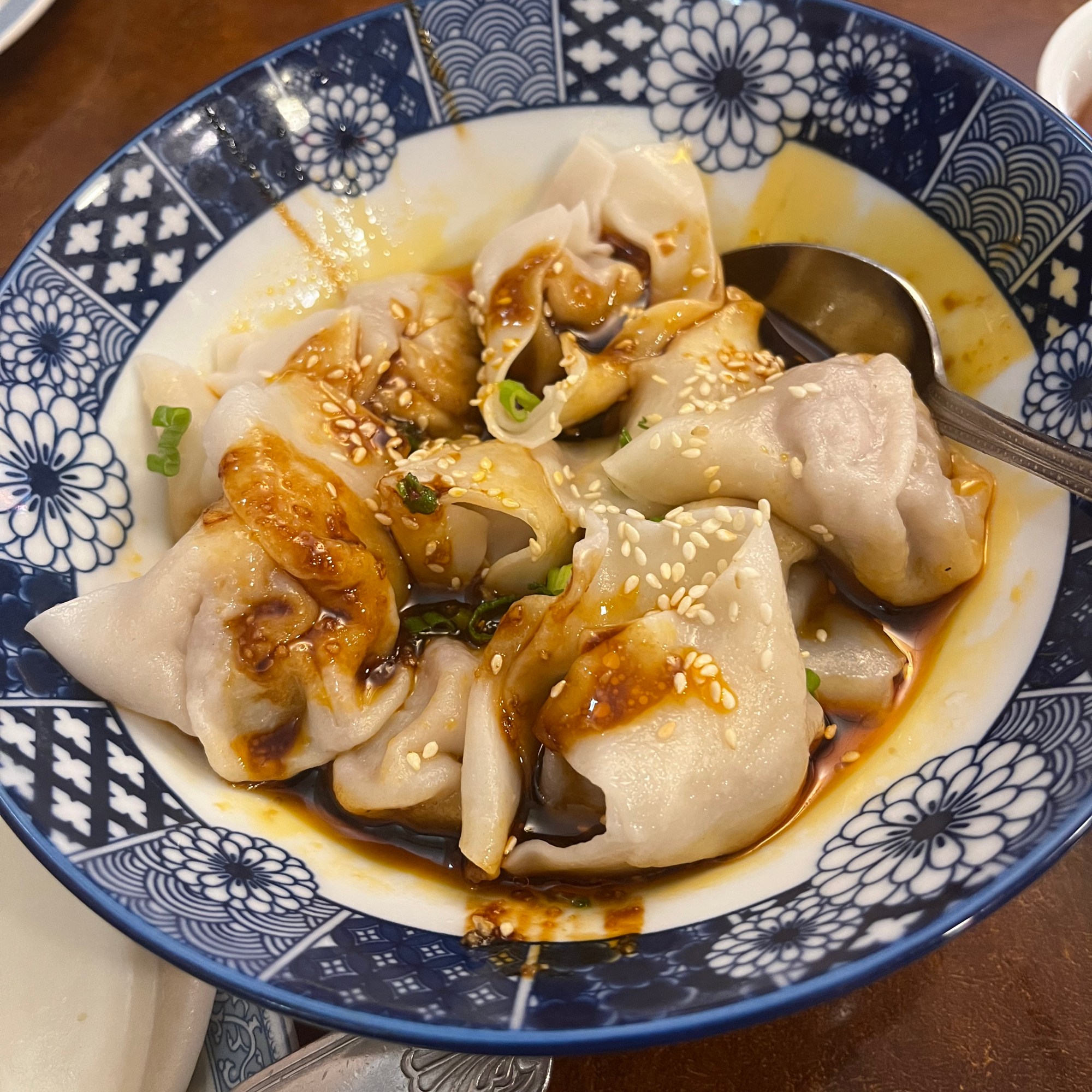 The Dumplings: Chengdu has a good selection of dumplings and buns, several of which, including the steamed and pan-fried dumplings, are vegan. The steamed dumplings, which are filled with cabbage, carrot, chive, radish, green onion, ginger, garlic, and soy, were good, but not as good as remember Su Xing’s being. The Pork Wonton’s with Chili oil were very good, and I am definitely going to get these again. Part of what I liked about their wontons is that they had lots of excess noodle for the sauce to cling to. The chili sauce had lip and tongue tingling Sichuan pepper corns as an ingredient, which is unusual in this dish.