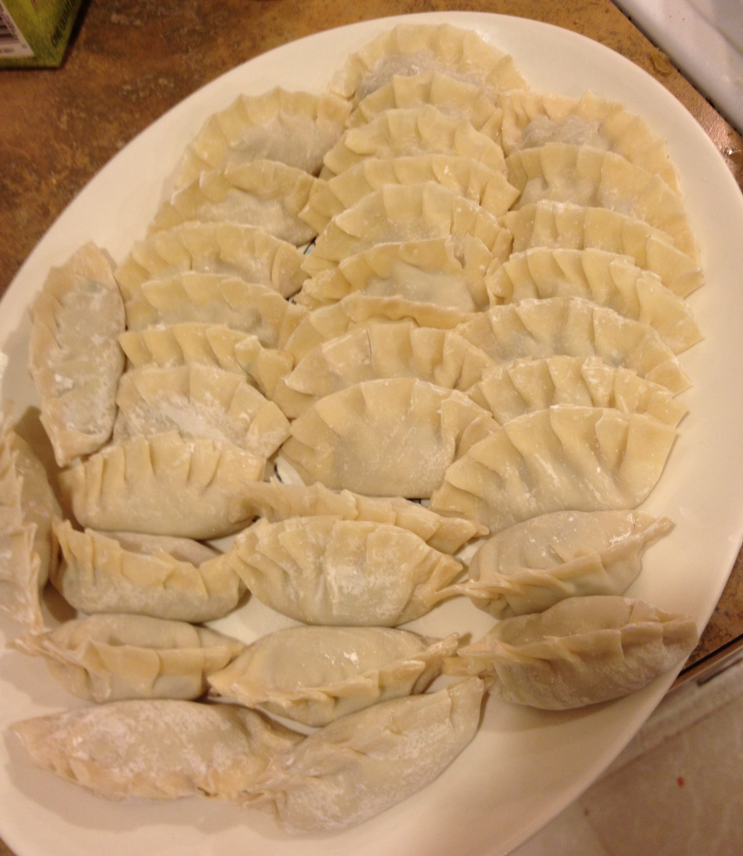 Heat oil in a pan and pan fry the dumplings. When the bottom of the dumplings have turned golden brown add water to the pan and cover to steam the dumplings. Hold the lid on the pan and shake the pan a little so the dumplings don’t stick to the pan too aggressively. Once the water has boiled off, pan fry a little longer to crisp the bottoms of the dumplings.